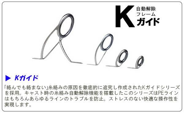 | 「パワー・繊細さ・シャープさ・しなやかさ・遠投性能・取り回し」全てを高次元で融合!!ガイドにはKRコンセプトを採用し、ブランクスのポテンシャルを更に引き出します。大型狙いや中小型、磯場やテトラ等でのやり取りにも対応します! |