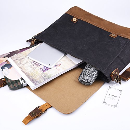 *This leather messenger bag is a neutral bag, suitable for men and women.Handmade series transforms the original natural beauty into every bag. * The distinguishing feature of bag is that leather surface have disorderly wrinkles, scars, scratches that present the style of retro and wildness. After grinding,oiling,waxing,will form a special skin effect and it is the first choice in major brands. *Oil wax cloth is used for water-proof or moisture-proof and moisture-proof. It is usually made of polyester fabric with waterproof, mildew proof and dust proof. Wash with washing machine is the wax that can wash oil wax cloth, waterproof function also can get bad, plz use wet cloth to scour. * Highest quality leather goods and accessoriess crafted by hand,we strive to creat modern products what what you like! Structure Details? *1 main compartment with main secure zipper closure,2 big compartment inside.? *1 wall zipper pocket for significant articles such as wallets and identification documents;? *2 inner slip pockets for small gadgets;? *1 rear padded compartment? Dimension * Messenger bag:15"(L)x11"(H) x 4.33"(W) * Shoulder strap: 31.4"- 55" Upkeep 1.Apply cream/moisture lotion onto the leather surface,and use a soft cloth to complete the upkeep. 2.Avoid cleaning products with alcohol, turpentine or other mineral spirits as they will discolor and dry out leather. 3.Never allow water to soak into your bag. If the bag gets wet, do not use a hair dryer on it. Instead, absorb as much water as possible with a thick microfiber hand towel and allow the bag to air dry. Package includes *1 x Leather Messenger Laptop Bag *1x adjustable strap 0 |