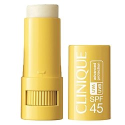 -. Feature : Clinique Targeted Protection Stick SPF 45 / Clinique steps up protection against the aging and burning effects of UVA and UVB rays for fragile areas-eye-area skin, lips, nose, earlobes, even scars / Enhanced UVA defense helps guard against premature aging