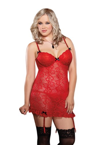 -. Title : Dreamgirl Women's Plus-Size Sensual Desire Stretch Lace Garter Slip and Thong Set