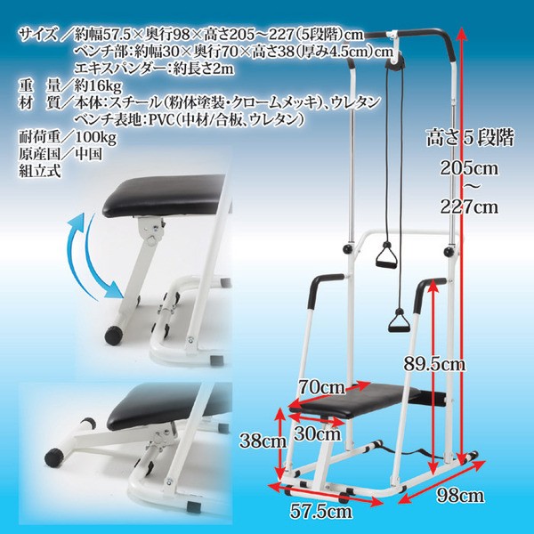 【商品名】ぶら下がり君 極(ぶらさがり健康器) ベンチシート付き 〔ぶら下がり運動 アームエキスパンダー ベンチプレス〕
