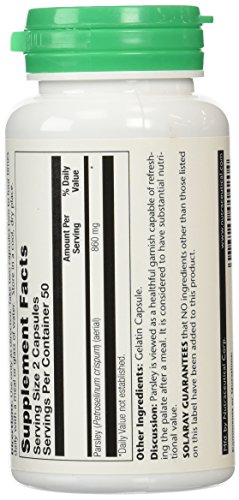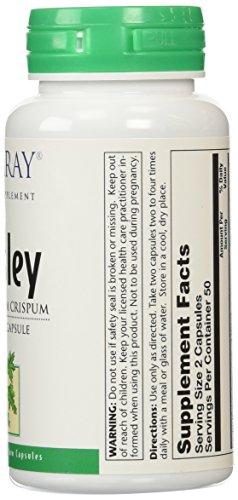 -. Binding : Health and Beauty -. Brand : Solaray -. Department : Herbs -. EAN : 0076280014204 -. Feature : Helps relieve the uncomfortable symp of indigestion like gas, bloating and constipation / Contains vitamins C and K as well as calcium / Beneficial as a laxative for constipation as well as a diuretic for water retention -. IsAdultProduct : 0 -. Label : Solaray -. Manufacturer : Solaray -. Model : 076280014204 -. MPN : 076280014204 -. NumberOfItems : 1 -. PackageQuantity : 1 -. PartNumber : 076280014204 -. ProductGroup : Health and Beauty -. ProductTypeName : HEALTH_PERSONAL_CARE -. PublicationDate : 2014-10-04 -. Publisher : Solaray -. ReleaseDate : 2015-03-19 -. Size : 100 capsules -. Studio : Solaray -. Title : Solaray Parsley Capsules, 430 mg, 100 Count -. UPC : 076280014204