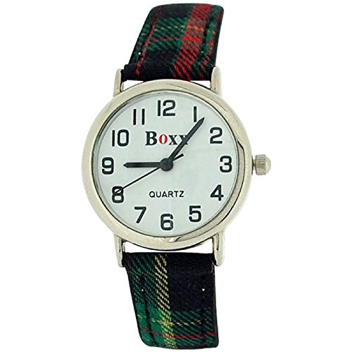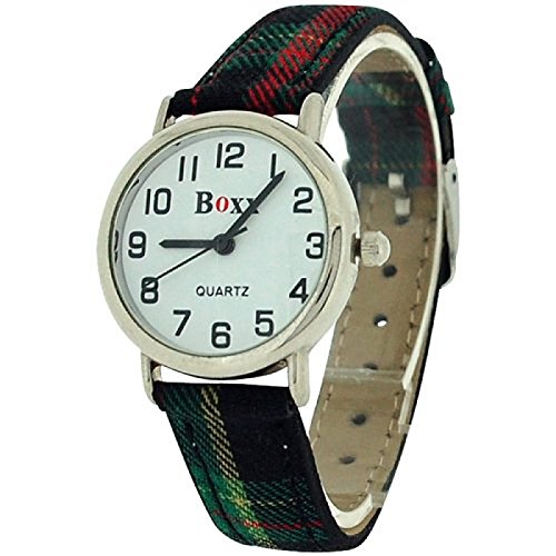 -. Title : Boxx Unisex Children's Analogue Green Tartan Fabric Strap Buckle Funky Watch