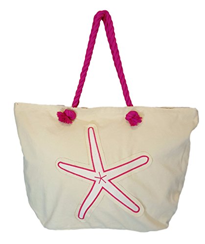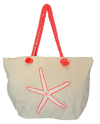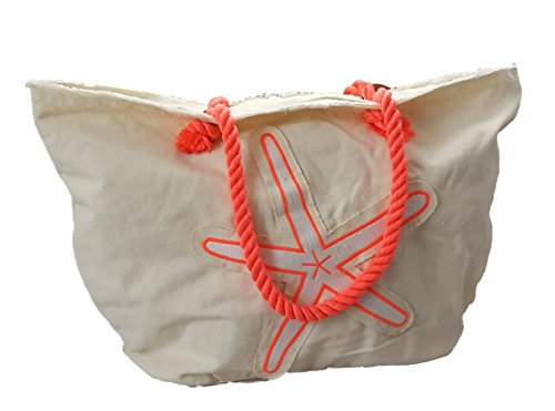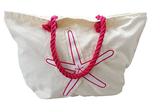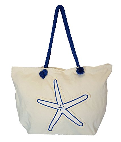 Starfish Embroidered Patch Large Shopping Beach Tote Bag - Rope Handles