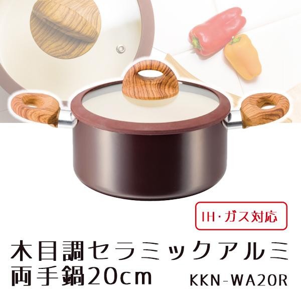 内面にはセラミックコーティングが施されているので、汚れが落ちやすくなっている両手鍋です。 |
