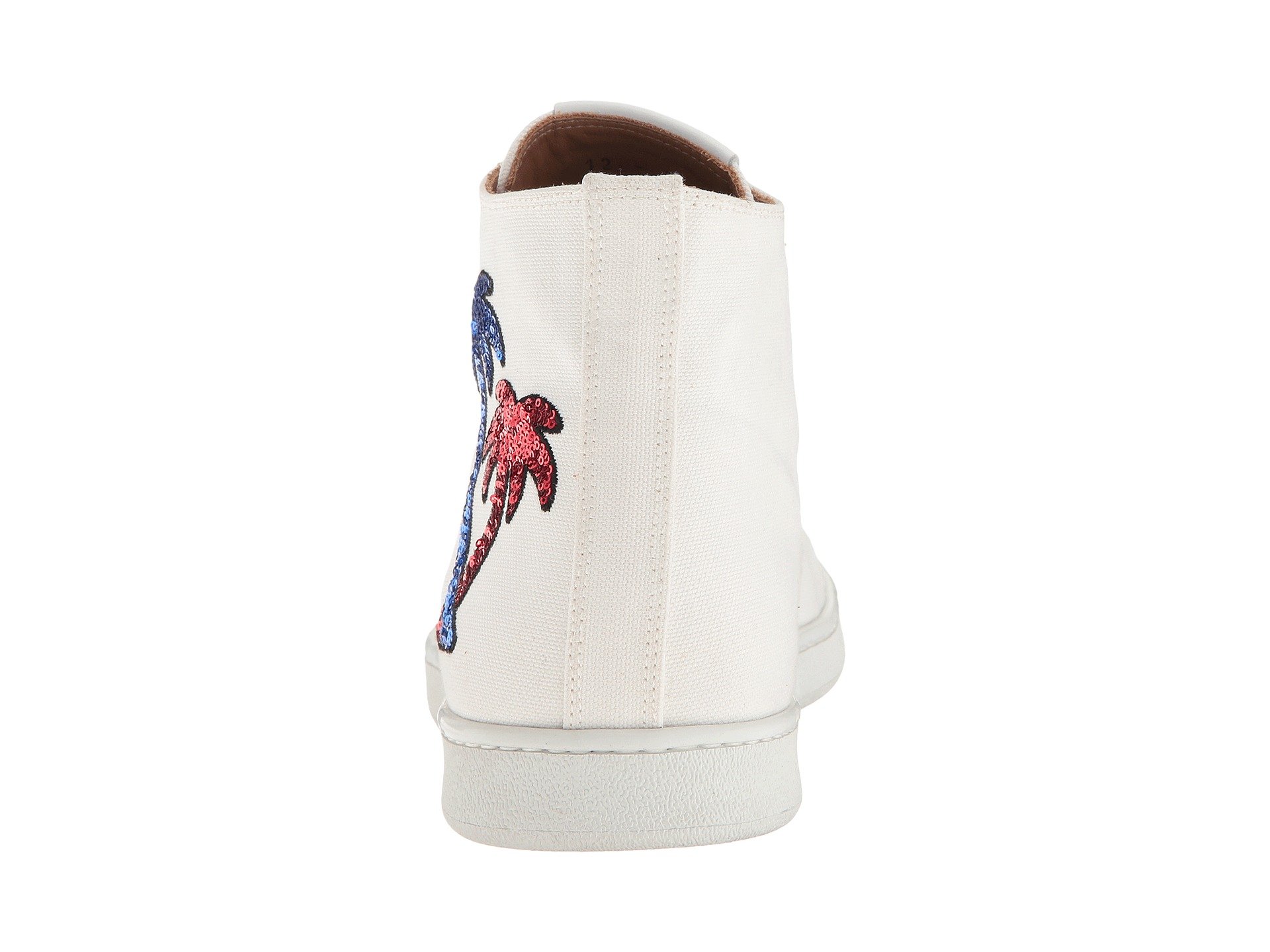 | Product Information SKU: #8823439Keep it cutting edge and casual with the effortless look of the Canvas Palm High Top from Marc Jacobs™.Leather and textile upper.Lace-up closure connected through metal eyelets. Playful palm tree designs embellished with sparkling sequin in contrasting colors to each side.Slip-on construction.Round-toe silhouette.Leather lining.Lightly padded leather insole.Stacked, durable rubber outsole.Made in Italy.This item may ship with an attached security tag. Merchandise returned without the original security tag attached or a damaged tag may not qualify for a refund.Product measurements were taken using size 46 (US Men's 12), width D - Medium. Please note that measurements may vary by size.Weight of footwear is based on a single item, not a pair.Measurements: Weight: 1 lb 1 oz Shaft: 5 in |