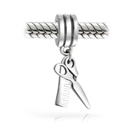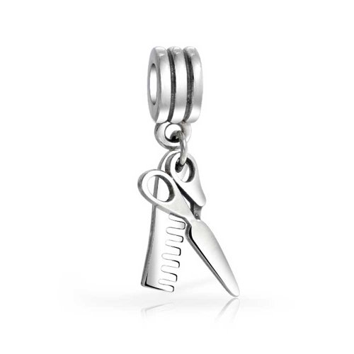 BLING JEWELRY 925 STERLING SILVER COMB AND SCISSORS DANGLE BEAD FITS PANDORA