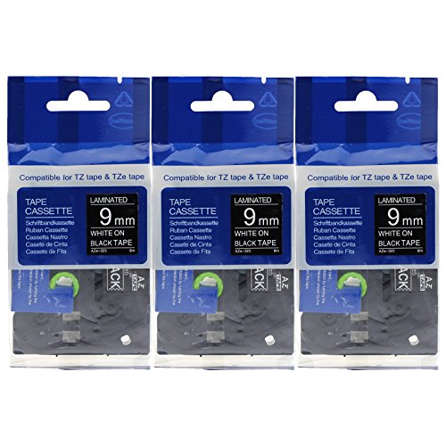-. Title : 3 Pack of TZe325 Compatible Tape for BROTHER P-Touch 3/8" (9mm x 8m) White on Black by OFFICE LABELS