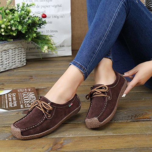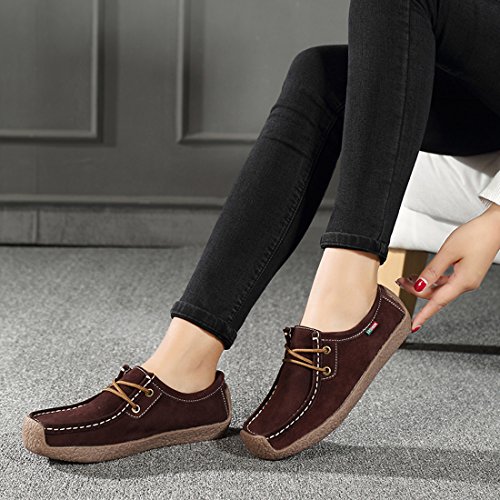 | (Z.SUO)/Women's/Loafers Slip-Ons/DIRECT FROM USA/Z.SUO Women Casual Soft Suede Comfortable Lace Up Round Toe Flat Loafers Shoes |
