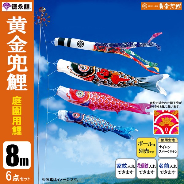 | 黄金兜鯉 庭園用大型鯉のぼり ポール別売り | 7m鯉3匹 7m鯉4匹 7m鯉5匹 | 8m鯉3匹 8m鯉4匹 8m鯉5匹 | 9m鯉3匹 9m鯉4匹 9m鯉5匹 | 10m鯉3匹 10m鯉4匹 10m鯉5匹 |