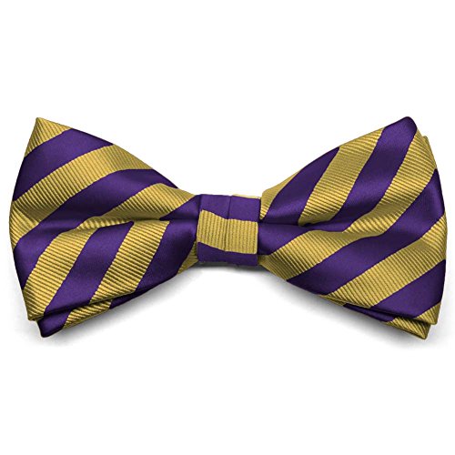 -. Title : TieMart Dark Purple and Gold Formal Striped Bow Tie