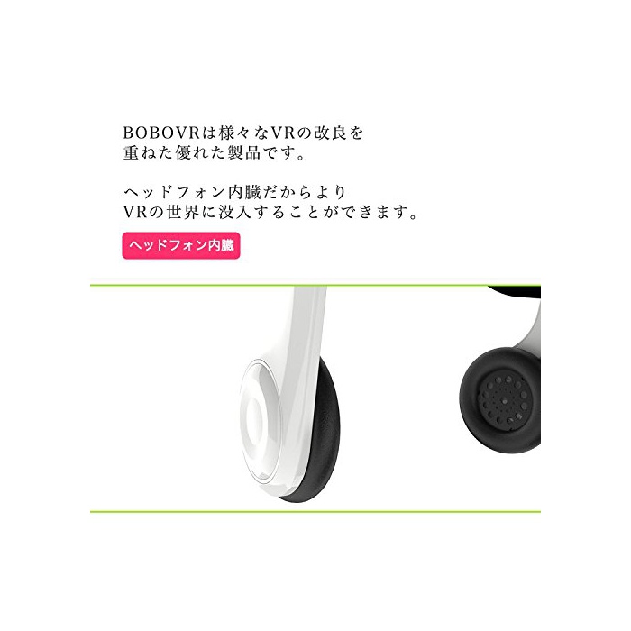 BOBOVR은 여러가지 VR의 개량을 중잔 우수한 제품입니다.헤드폰 내장이기 때문에 보다 VR의 세계에 몰입하는 것 를 할 수 있습니다.