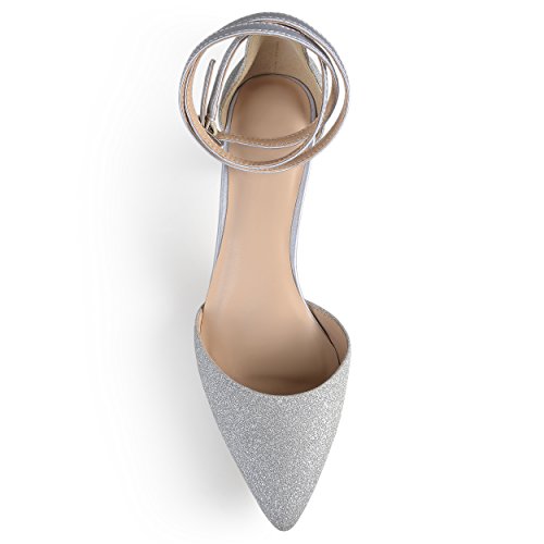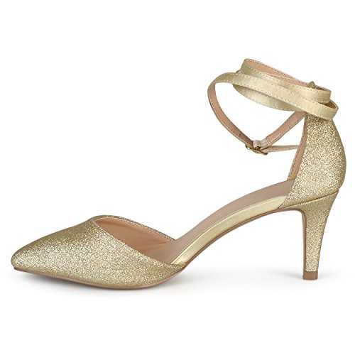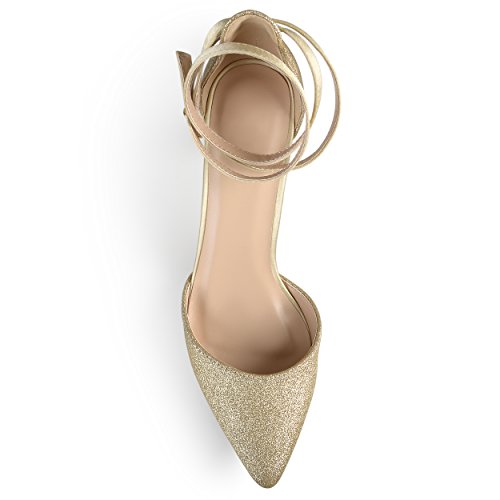 Product DescriptionBrinley Co. Womens glitter d'orsay pointed toe wrap strap pumps0