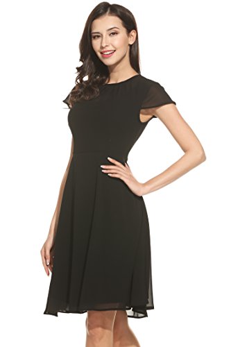UNIQUE DESIGN: Fit & Flare, Cap short sleeve, Front pleated, keyhole back