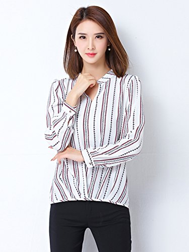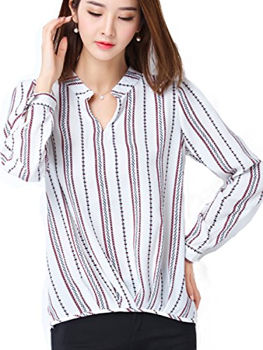 -. Title : (リッチココ)richcoco レディース ブラウス スキッパー シフォン 長袖 シャツ vネック 不規則裾 トップス 白 紺色 大きサイズ 白 XL