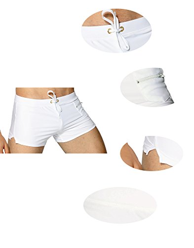 Malavita Mens Swim Trunks Pants Swimwear Shorts Slim With Zipper Pocket (XL, White)