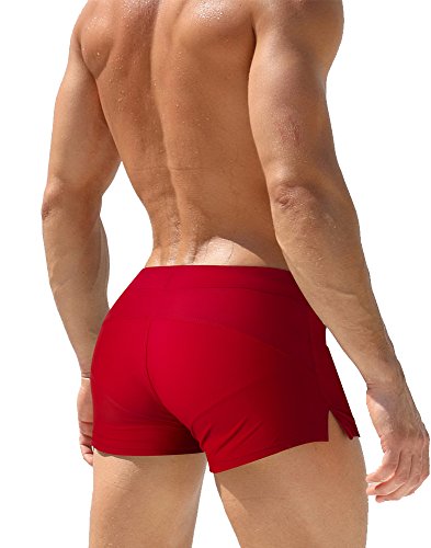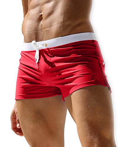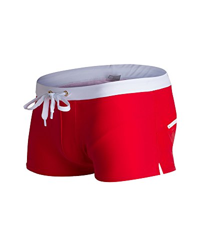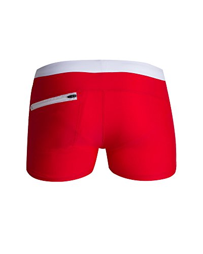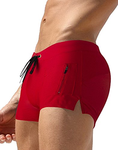 Malavita Mens Swim Trunks Pants Swimwear Shorts Slim Wear With Zipper Pocket (XL, Red)