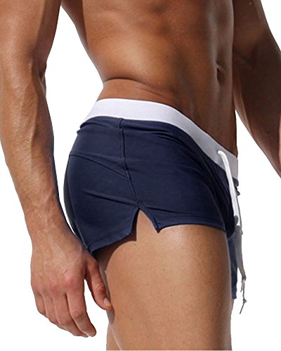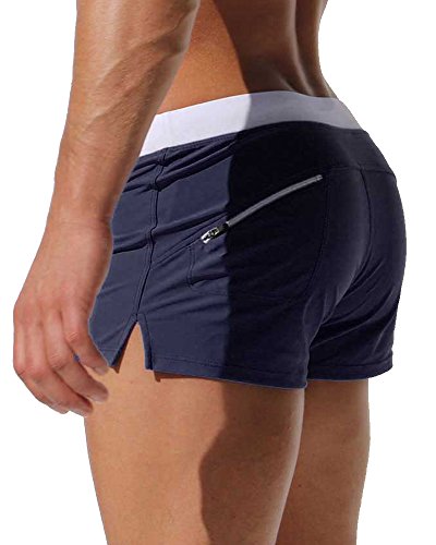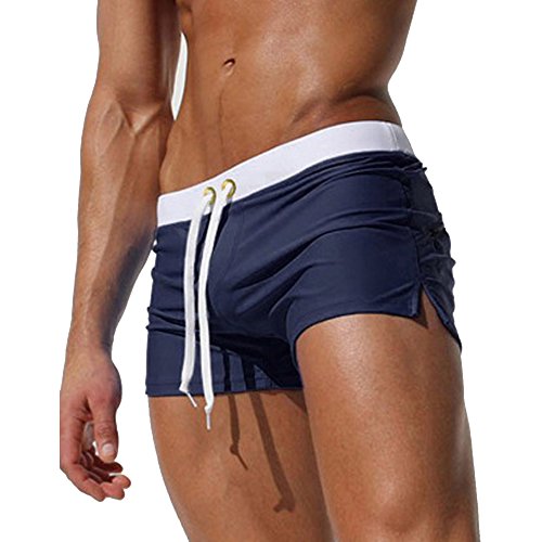 Malavita Mens Swim Trunks Pants Swimwear Shorts Slim With Zipper Pocket (M, DarkBlue)