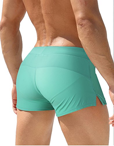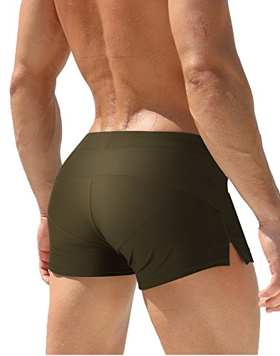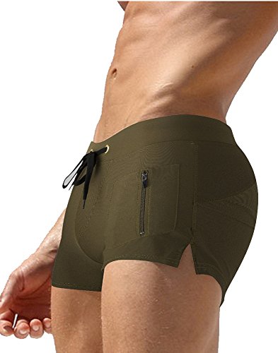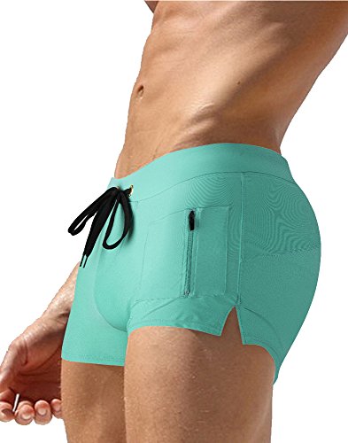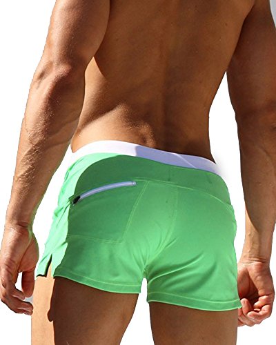 Malavita Mens Swim Trunks Pants Swimwear Shorts Slim Wear With Zipper Pocket (L, Green)