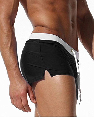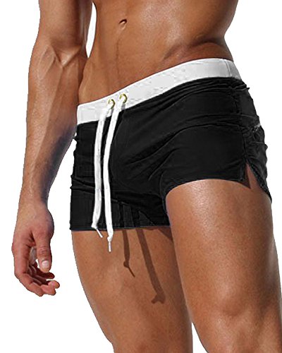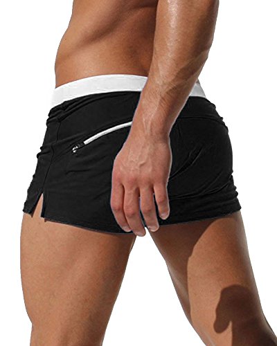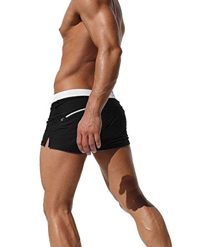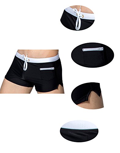 Malavita Mens Swim Trunks Pants Swimwear Shorts Slim Wear With Zipper Pocket (XL, 01black)