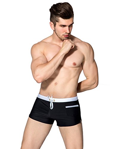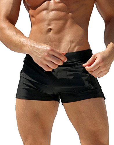 Malavita Mens Swim Trunks Pants Swimwear Shorts Slim Wear With Zipper Pocket (M, Black#1)