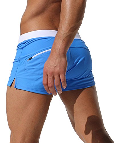 Malavita Mens Swim Trunks Pants Swimwear Shorts Slim Wear With Zipper Pocket (XL, Light blue)