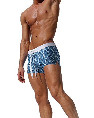 Malavita Mens Swim Trunks Pants Swimwear Shorts Slim With Zipper Pocket (M, Blue)