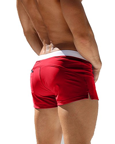 Malavita Mens Swim Trunks Pants Swimwear Shorts Slim Wear With Zipper Pocket (L, 05gules)