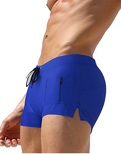 Malavita Mens Swim Trunks Pants Swimwear Shorts Slim With Zipper Pocket (XL, Blue)