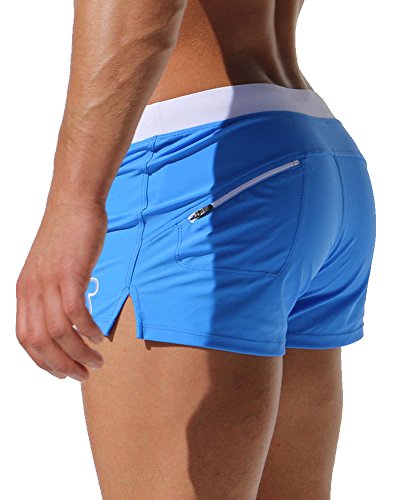 Malavita Mens Swim Trunks Pants Swimwear Shorts Slim With Zipper Pocket (L, Blue)