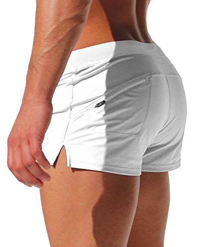 Malavita Mens Swim Trunks Pants Swimwear Shorts Slim With Zipper Pocket (L, White)