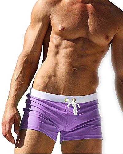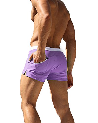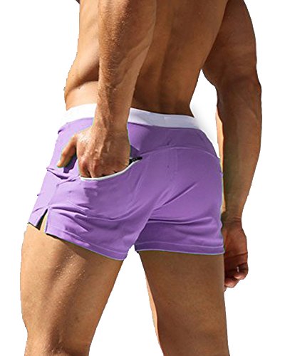 Malavita Mens Swim Trunks Pants Swimwear Shorts Slim Wear With Zipper Pocket (L, Purple)