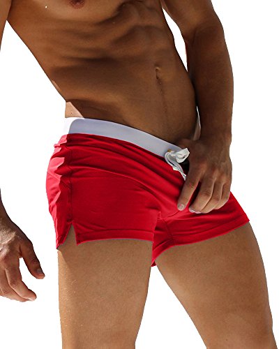 Malavita Mens Swim Trunks Pants Swimwear Shorts Slim Wear With Zipper Pocket (L, Red)