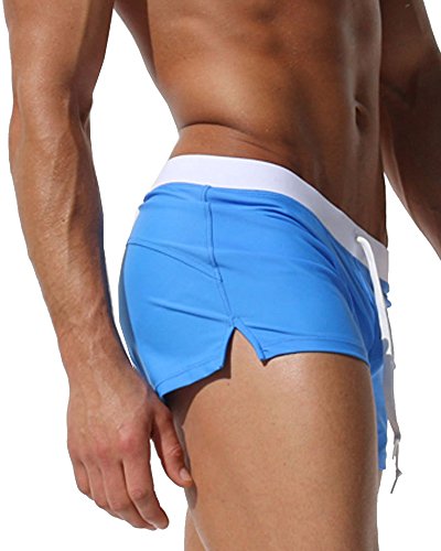 Malavita Mens Swim Trunks Pants Swimwear Shorts Slim Wear With Zipper Pocket (L, Light blue)