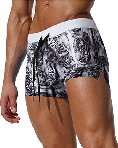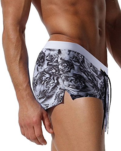 Malavita Mens Swim Trunks Pants Swimwear Shorts Slim Wear With Zipper Pocket (M, White#1)