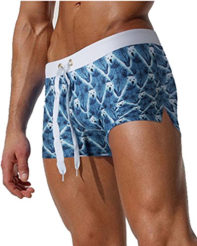Malavita Mens Swim Trunks Pants Swimwear Shorts Slim Wear With Zipper Pocket (XL, 03lakeblue)
