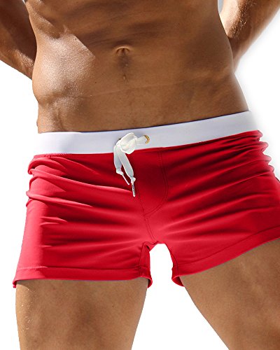 Malavita Mens Swim Trunks Pants Swimwear Shorts Slim Wear With Zipper Pocket (M, 05gules)