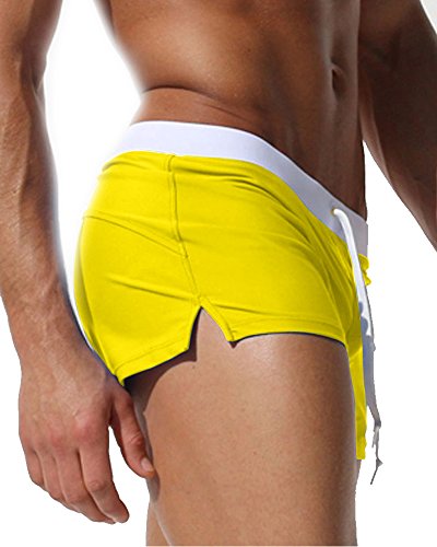 Malavita Mens Swim Trunks Pants Swimwear Shorts Slim Wear With Zipper Pocket (M, Yellow)