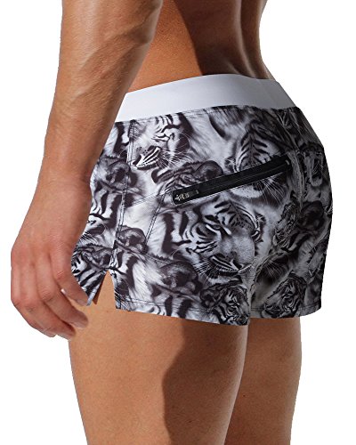 Malavita Mens Swim Trunks Pants Swimwear Shorts Slim With Zipper Pocket (L, Grey)