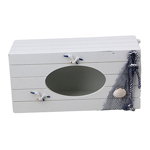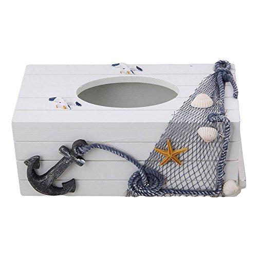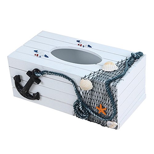 Mural Art Mediterranean Style Ocean Theme Wooden Tissue Box Paper Towel Box Napkin Organizer Holder Home Decoration (Anchor)