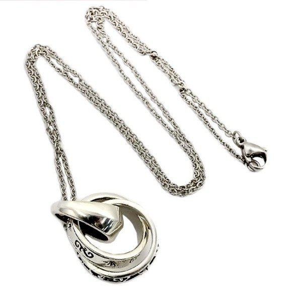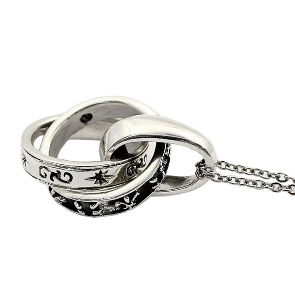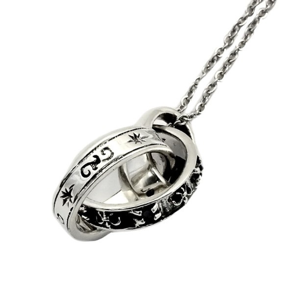 繋がりを大切にしたいRoyal Jokerコネクトリングペンダント。2つの輪が繋がった2連リングトップは人気のモチーフです。一つの輪にはブラックCZ(キュービックジルコニア)と百合の紋章をあしらい、もう一つの輪にはアラベスク模様を施しています。本物のシルバーだから出せる質感が堪能できるアイテムです。専用のケースが無料で付属するので、プレゼント・ギフトにとってもオススメです。