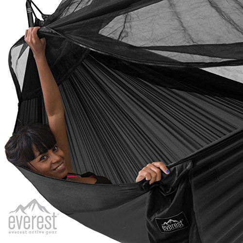 RIPSTOP DIAMOND WEAVE NYLON – Color designs to blend into your surroundings durable quality breathable high tensile 100% 210T taffeta parachute quick dry diamond weave nylon fabric, YKK double tab zip and components triple stitched edge seams rated 400 Lbs. Big enough for Two and spacious for One. Duo Swing Hammock at 10 ft long and 6 ft wide will provide reliable support ensuring you will stay comfortable.
