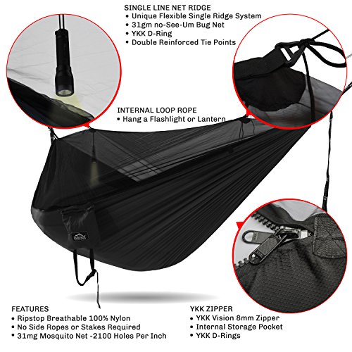 EASY STEP SET UP & HAMMOCK FULLY REVERSIBLE - Our Innovative net system allows for a quick and simple setup complete with FULL set up instruction, our design allows the hammock to be simply turned over for use with or without mosquito net.