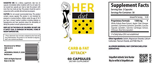 *** Does contain Chitosan which is does come from Shellfish *** Every woman wants a beautiful physique, but our modern diet and lifestyle makes this nearly impossible. Tearing away from the foods and habits we've grown accustom to is no easy feat. But with time and diligence, you can overcome your weight loss goals. Proper diet and exercise are essential, and offer quicker results when using products like HERdiet's Carb & Fat Attack.
