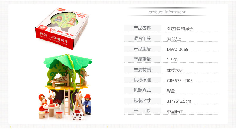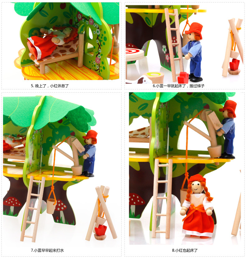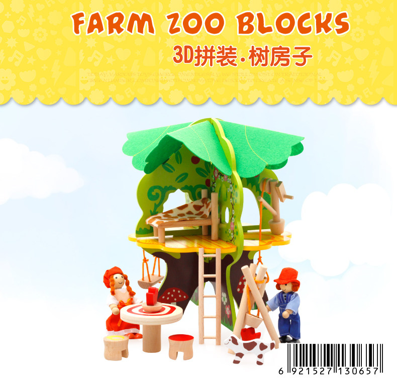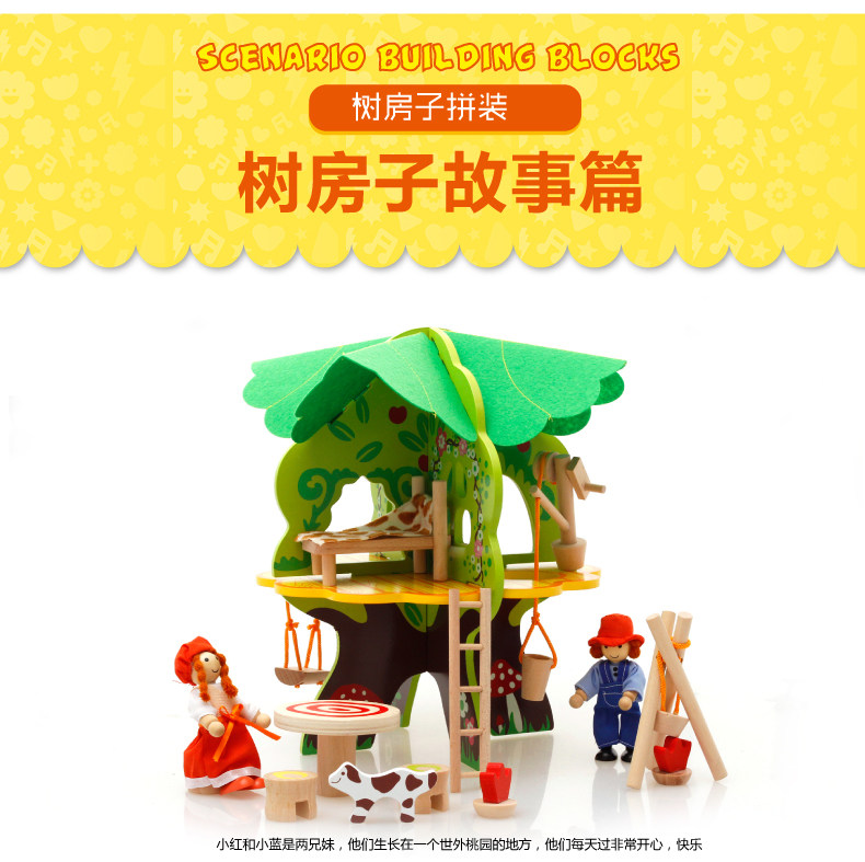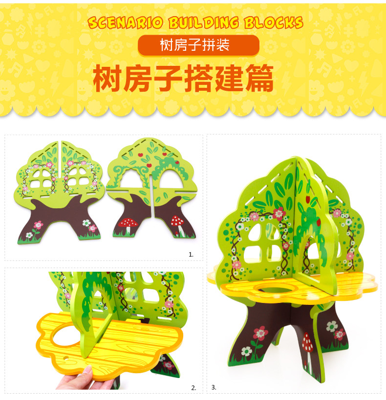 儿童木制DIY别墅树房子拆拼装组合模型早教益智过家家玩具