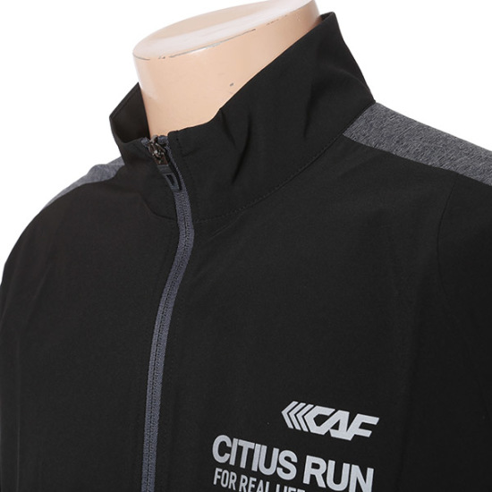 스트레치 소재를 믹스하여 활동성이 좋은 우븐 트레이닝복 자켓