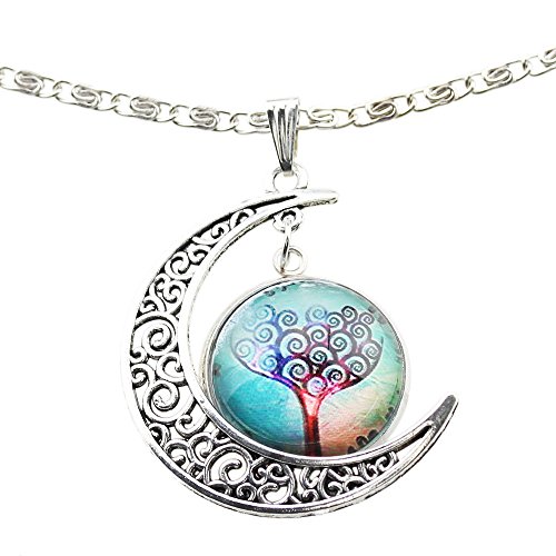 -. Feature : Material: alloy & glass / Tree of life shape. Size: approx. 20mm (0.8 inches) in diameter / Moon: approx. 1.4x1.2 inches / Chain length: approx. 16.5 inches + 2 inches extender / lobster claw clasp