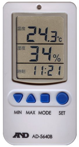 -. Feature : 温度測定範囲:0~ 50.0℃ / 温度の最小表示:0.1℃ / 温度測定精度:±1℃(10.0~39.9℃)、±2℃(0~9.9℃、40.0~50.0℃) / 湿度測定範囲:20 ~ 90%RH / 湿度最小表示:1%RH / 湿度測定精度(25℃時):±5%RH(30~69%RH)、±10%RH(20~29%RH、70~90%RH) / 時計表示:24時間表示 、最小表示:1分 / 温度アラーム設定範囲:0 ~ 50.0℃、0.5℃刻み / 電源:単4形乾電池2本
