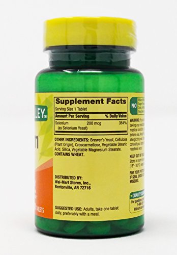 Studio : Spring Valley Publisher : Spring Valley Binding : Health and Beauty Product Description Selenium Tablets are made with heart-healthy ingredients that offer antioxidant support. This formula can replenish what statin medications deplete. These selenium dietary supplement tablets come in a 200 mcg size. They are made without milk or milk derivatives, lactose, sugar, preservatives, soy, artificial color, flavor or sodium. Other Ingredients: Brewer's Yeast, Cellulose (Plant Origin), Croscarmellose, Vegetable Stearic Acid, Vegetable Magnesium Stearate. 0