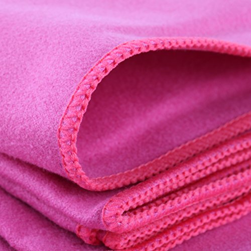 - Feature : 1 bath towel (31 x 51") and 1 sport towel (16 x 24"). / Each towel has a convenient hanging loop and comes with its own carry bag. / Suede-like soft, this towel soaks up nearly 5 times its weight. Wring it out and use again immediately. Dries quickly. / Excellent solution for travel, camping, backpacking, sports and fitness, beach and pool, getting caught in the rain. / Machine wash and dry. Colors will not bleed.